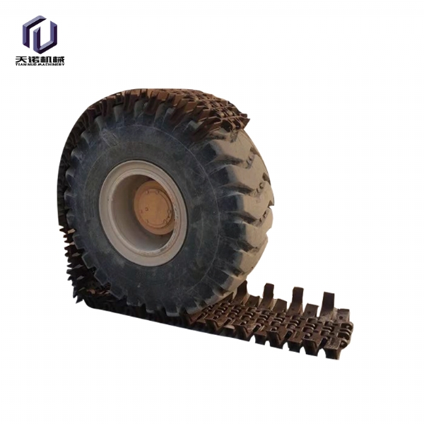 | 锻造履带 | 600KG | 6个月 | 防滑 | 23.5-50轮胎 | 泥泞有效途径,露天煤矿,炼钢厂,采石厂等 | 摇葫芦、挂钩、铁丝、大锤、撬棍、活口扳手 |